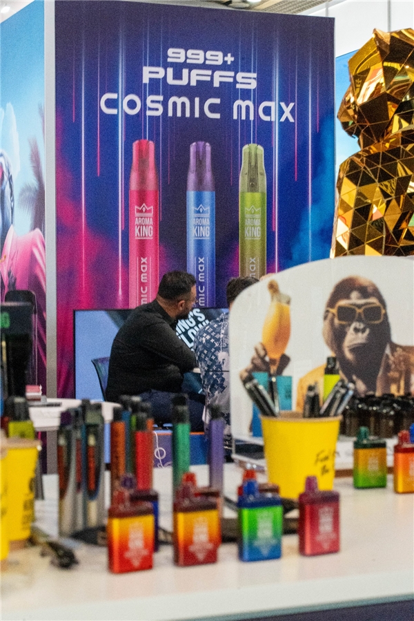 波兰一次性电子雾化品牌AROMA KING近期推出新品Cosmic Max系列。Cosmic Max搭载全球首款陶瓷芯一次性解决方案FEELM Max,该技术首次将TPD合规产品的口数由600口提升至800口+。目前Cosmic Max已经在西班牙、法国、比利时和奥地利等市场上市。在近期的德国多特蒙德展会上,AROMA KING也在展台重点展出了该款产品。